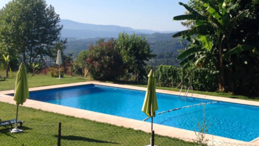 Site is close to A7 motorway east of Guimarães. From west leave at exit 11 and join N206 for 13 km. east to Gandarela. Just before tunnel under motorway, turn right and immediately sharp right (Ribas). From east at exit 12 take N206 west for 8 km. and turn left and right after going under motorway. From here IGNORE SatNav: follow blue and red campsite signs. At white chapel turn left to cemetery. Caravans MUST stop here and phone site to be towed in. If no reply, phone mobile: 912 715 531 or 915 135 762. Others turn left towards Paço and take right fork. In 600 m. turn left (very steep climb - engage first gear), pass two houses, turn right then left to site on left up another steep slope.