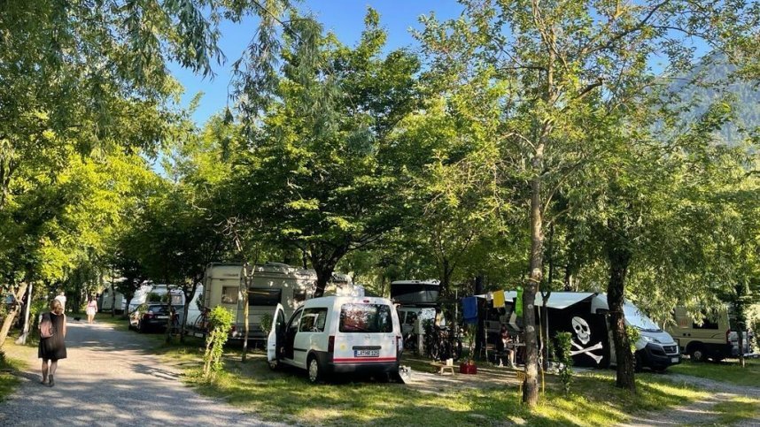 This is a delightful site next to a small lake in a wetland nature reserve, surrounded by tree-clad slopes with views of distant mountain peaks. Such peaceful locations are rare. The very friendly Cremella family are all involved in the running of the site and their welcome is warm and genuine. The 195 touring pitches (all with 3-6A electricity) are on gravel hardstanding or grass. The restaurant, with a bar and terrace, offers a range of Italian dishes and pizzas to eat in or take away. There is a well maintained swimming pool and a paddling pool with safety precautions.