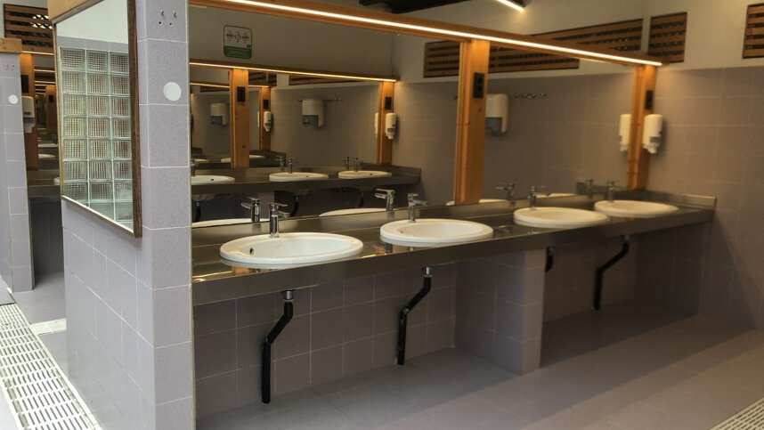 Three modern sanitary blocks have free hot water throughout. Mostly British style toilets. Accessible Facilities. Washing machines and dryers. Motorhome services. Large supermarket and other shops. Bars and restaurant (April-Sept). Pizzeria. Takeaway. Three swimming pools. Beauty and fitness centre. Minigolf. Disco. Entertainment team in high season. Beach bar. Playground. Tennis. WiFi (charged). Bicycle hire. Bungalows and mobile homes for hire.