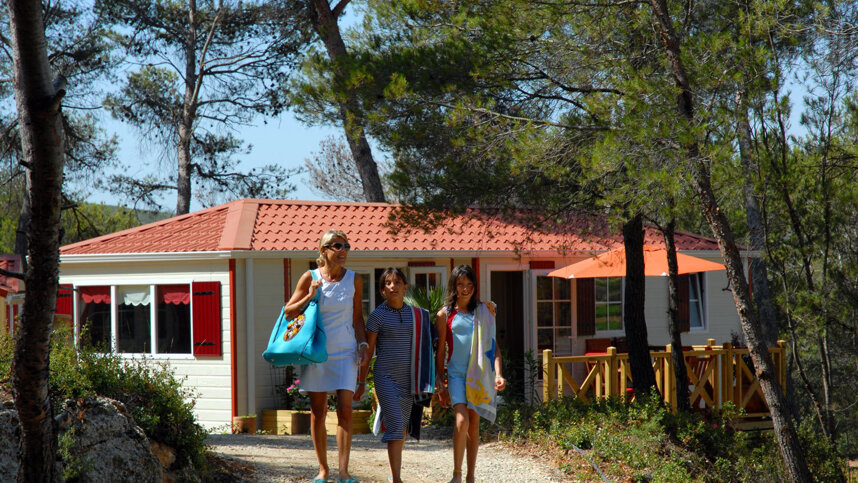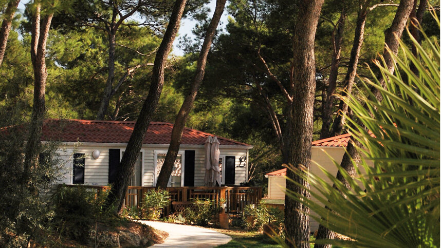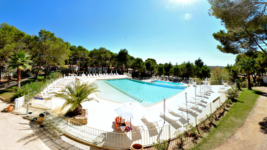 Camping Résidentiel la Pinède is a quiet site set back from the bustling resorts of Cap d’Agde and Sète, and is positioned amongst 300-year-old pine trees, partly on a hillside with views of vineyards and causses. All 155 mobile homes are privately owned or available for rent, they are well cared for with pretty, red tiled roofs and brightly coloured shutters, wooden decking and gardens. Cars are left at the perimeter of the site and paths meander through the pretty gardens and homes. Please note that there are no touring pitches here. The smart clubhouse at the heart of the site, which houses the bar and an entertainment-free restaurant, with a south facing terrace overlooking the pool area. There is also a second smaller heated pool, spa and children’s pool on the terrace below. La Pinède is open all year.