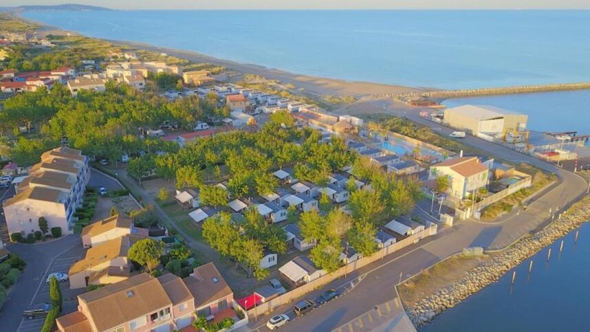 From A9 take exit 34 and the N312 towards Agde. Continue past the turning to Cap d’Agde towards Sète for about 5 km. Proceed straight over two roundabouts at Marseillan-Plage and follow signs for Est Plage. Site signed on right.