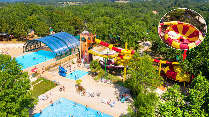 Roca d’Amour, set on two sites 500 metres apart, is situated in the heart of the Quercy Causses natural regional park, close to the Gouffre de Padirac. The main site (Roca d’Amour 1) has some steep gravel roads making access to some pitches difficult, but there is an area suitable for large outfits. There are 240 pitches over both sites with 52 good sized size, slightly sloping and uneven, well shaded pitches for touring, all with 10A electricity. The site is very active in July/August but outside this period it is very quiet. The popular Aquatic Park is located at Roca d’Amour 2.