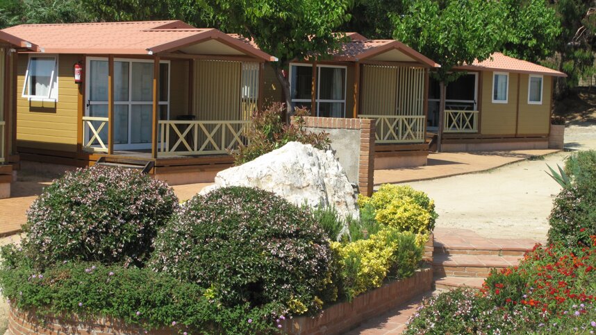 The permanent section of pitches is separated from the touring pitches and everything is kept very smart and clean. There is a new children’s play area at the top of the site, next to the pleasant pool, which enjoys fabulous views, and the small restaurant/bar here is open all day. The sports facilities are also at this lofty point and if you wish to shop or use the main bar and restaurant, catch the train to the lower area near reception. The beach is just 50 m. across the road and the town is a short walk.