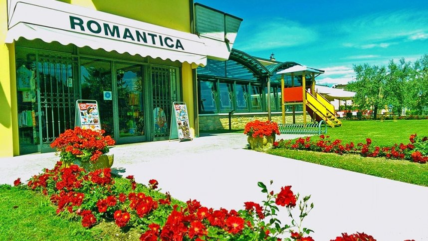 Camping Romantica is a tranquil site with some lakeside pitches that have beautiful views across the lake to the mountains. The glittering lights across the lake at night are quite romantic and it is a pleasure to sit out and enjoy balmy summer evenings here. The 280 pitches are of 70-80 sq.m, mostly on grass and with tarmac access roads, many having shade. The lake is accessed through a security fence and across a public promenade. It is great here for swimming, watersports and boat launching. A stylish, bistro style restaurant is situated at the front of the site serving good food in a very attractive, modern setting.