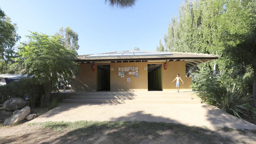 Three excellent, modern toilet blocks are very clean and offer hot water throughout, hot showers and single sex British style toilets. Accessible facilities . Motorhome services. Shop. Pizza restaurant. Bar. Beach bar. Infinity swimming pool. Play area. Games room. Electronic games. Entertainment and family activities. Torches are essential here. WiFi (charged).