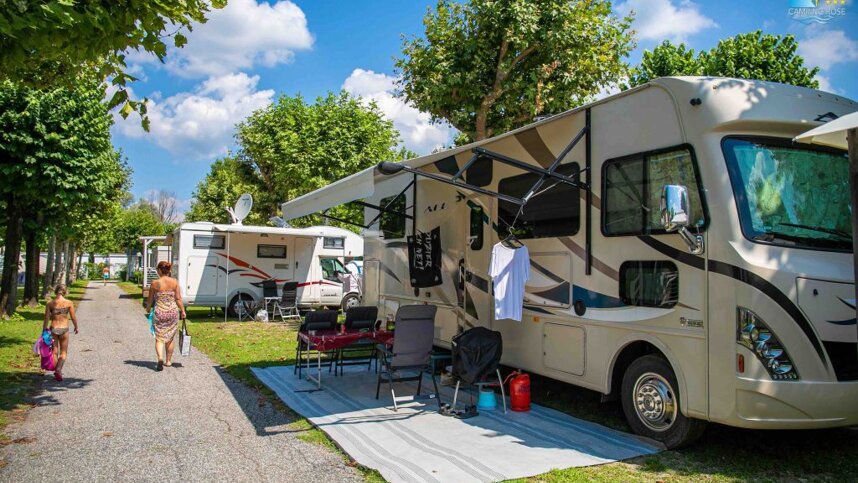 Camping Röse enjoys a particularly favourable position, located directly on Lake Maggiore in the Canneti di Dormelletto Nature Reserve, just a few kilometres from Arona. Milan is around 50 km away and makes a great day trip, with its design and fashion heritage and magnificent Gothic cathedral. The campsite is small and friendly with a welcoming atmosphere and is well laid out with large, grassy pitches, well shaded by mature plane trees with electricity and water.
