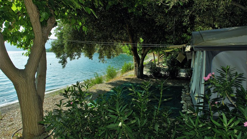 On the western coast of Evia, this site provides 150 average size pitches, of which 40 are used by static caravans. Served by a central spine road, they are all directly behind the pebble beach and most, despite the trees, flowering shrubs and screens, have views to the sea. Diving clubs are beginning to use the site as a result of the many diving opportunities that this coast offers and it is also popular with Greek families in high season. For the tourist the site offers the chance to explore North Evia and provides an alternative route between Athens and Thessaloniki via Greece’s second largest island.