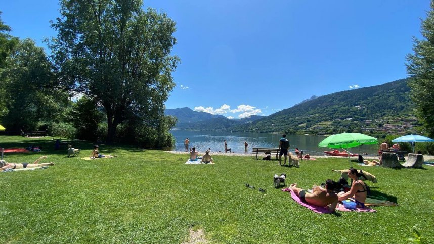 The lake is very close offering watersports and fishing. There are several grassy garden areas dotted around the lake not far from the campsite. All have enchanting views, seats, play equipment and lifeguard posts manned in high season. Used by a tour operator (25 pitches).
