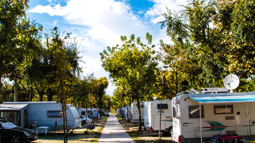 Camping San Francesco is a large, beachside site in a quiet location close to the coastal town of Caorle (Little Venice), known for its connection with Ernest Hemingway. Although there are over 600 mobile homes to rent, 370 level, grassy pitches are reserved for tourers. They are close to the beach, shaded, and all have electricity (10A) and fresh and waste water connections. The site has every facility for a comfortable holiday, with swimming pools, an attractive aquapark (extra charge), a good beach for swimming, a large supermarket etc. However, some touring in the area from the site and a trip to Venice are also worthwhile.