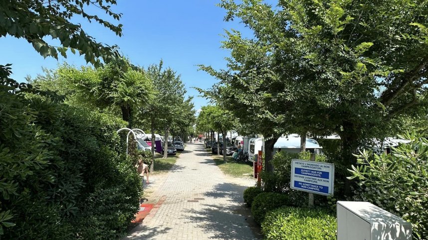 The site is on the Adriatic coast 20 km. northeast of Venice. From A4/E70 take Mestre exit and link road towards airport. Follow signs to Jesolo then Cavallino. Just after crossing river bridge, turn left into via F Baracca, after 600 m. keep right at traffic island, then after 100 m. left into Via del Fargo. Campsite is at the end of this road on right.