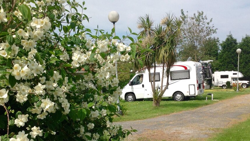 The toilet block provides showers, washbasins and wc’s. Laundry room with washing machine and dryer. Chemical toilet point. Motorhome service point. Dish washing area. Free Wi-Fi is available throughout the site. Bar. Cycle hire. Children’s play area. Shop. Public phone. Dogs allowed. BBQ area. Snack bar. Public transport, golf, fishing, sailing, indoor swimming pool all available nearby. Bicycle and surfboard hire. Bread to order. Ice pack freezer.