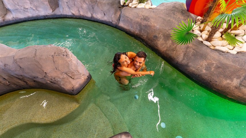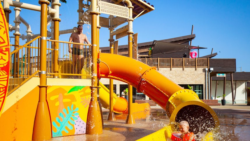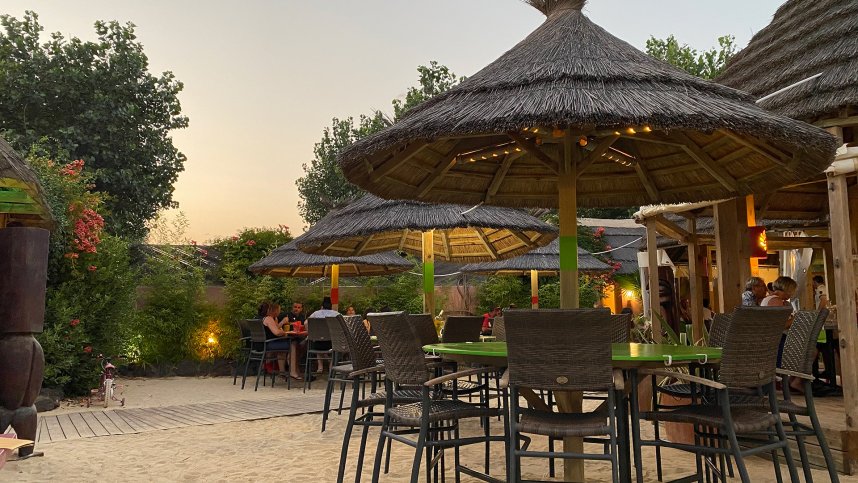 The large main pool is unusually situated upstairs on the roof top with views of the sea and with landscaped fun pools below, one with a waterfall and two long slides built round the rocks. An excellent paddling pool is also provided for little ones. There is direct access to the beach where you can windsurf or try sailing a catamaran. As the name suggests, there is an Hawaii theme to the site and the range of activities and entertainment provided, including a miniclub for children, reflect this.