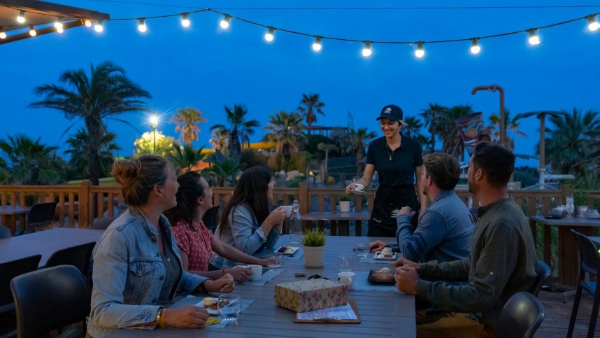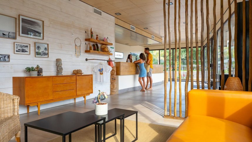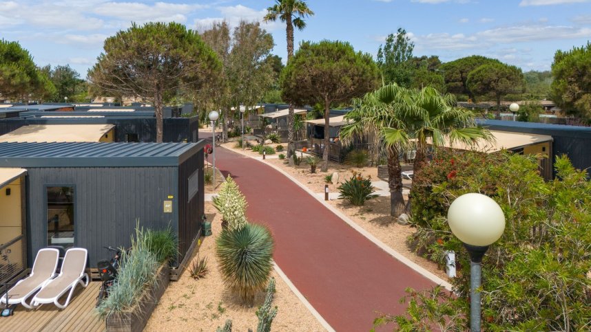 From A9 exit 35 (Béziers Est) follow signs for Sérignan then Sérignan-Plage (D37, 10 km). Once at Sérignan-Plage continue straight. Follow the sign for Aloha to right after the pink building.