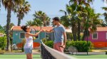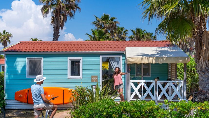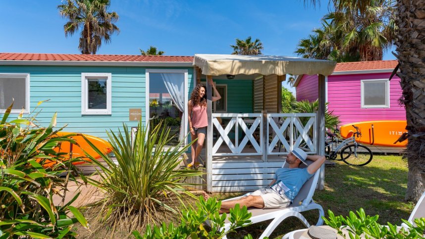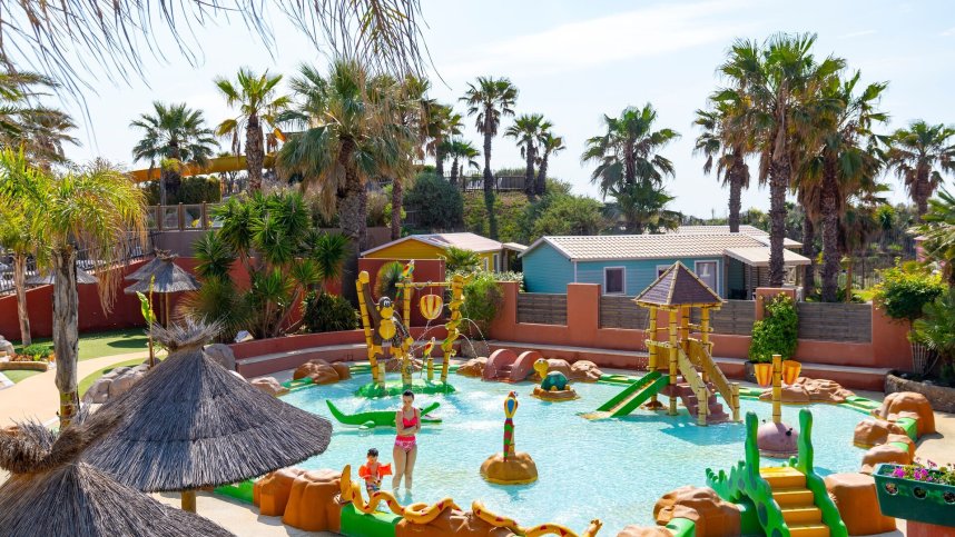 An impressive and well run site beside the beach at Sérignan-Plage. Split into two halves with a small beach running inbetween, Aloha offers a wide range of good quality facilities, all open when the site is open. There are 440 pitches with 207 mobile homes for hire, some in attractive garden settings. The 233 pitches for touring units are of a good size, regularly laid out on level, sandy grass with light shade. Easily accessed from tarmac roads, all have 10A electricity. The swimming pool complex is very impressive and there is an emphasis on activities for children with a popular play area and miniclub.