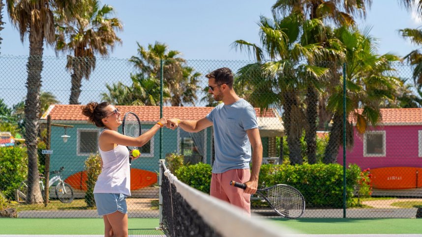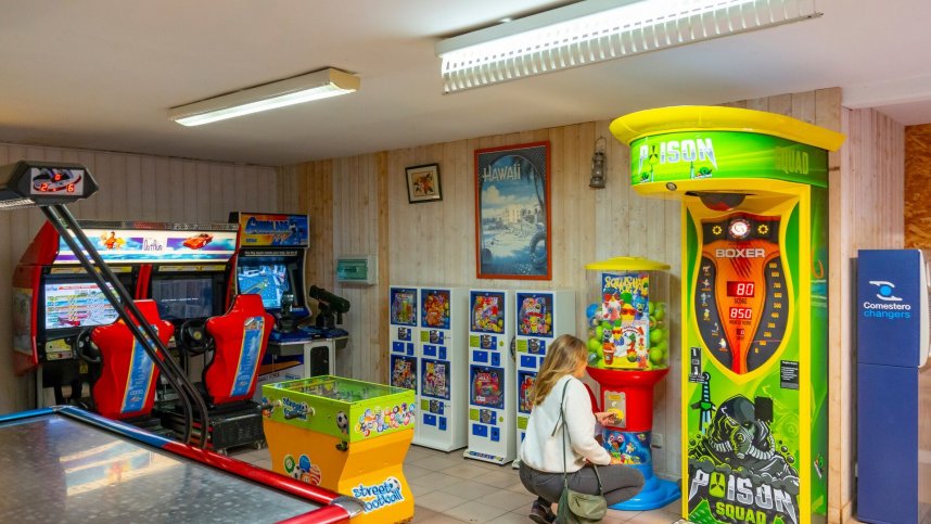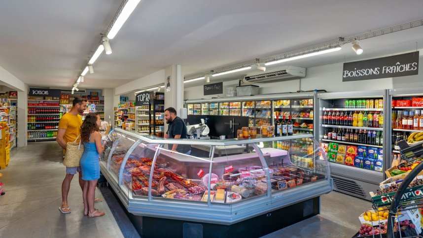Good toilet blocks, one of which is new and very impressive. They offer all modern facilities and are well equipped for children. Laundry. Motorhome services. Supermarket including fresh produce market. Bakery. Newsagent. Bazaar. Hairdresser. Bar, restaurant, snack bar, pizzeria and takeaway. Large heated pool and fun pools. Paddling pool. Playground. Tennis. Multisports facility. Large gym. Bicycle hire. Miniclub. Activity programme and evening entertainment. WiFi on part of site (charged). ATM.
