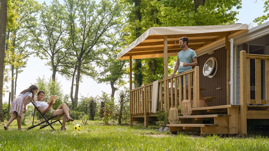 In high season, canoe trips on the Loire are popular and are organised by a local canoe club. A range of other activities including riding, visits to châteaux and gardens, golf, wine tasting and the many other local attractions can be booked on site. The site itself provides a comprehensive range of activities including a wellness centre (advance booking; over 18s only, over 16 if accompanied by an adult). Half-board arrangement is available in a range of rental accommodation, where a ‘comfort package’ can be booked in advance.