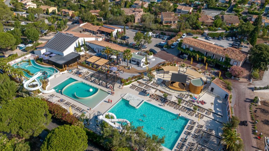 Sandaya Douce Quiétude is just a 10-minute drive from the sandy beaches at Saint Raphaël and Agay (with campsite shuttle transport) but is quietly situated at the foot of the Estérel Massif. There are around 440 pitches, 90 for touring units and 260 for fully equipped mobile homes for rent, some with air-conditioning, dishwasher and jacuzzi.