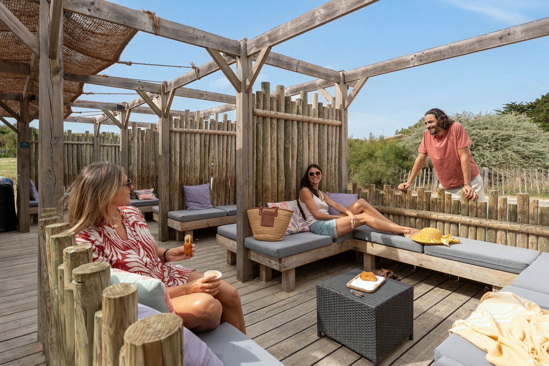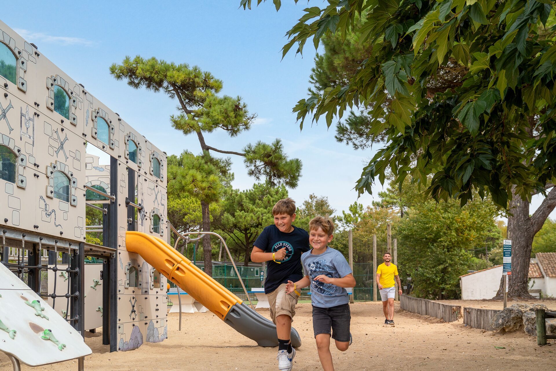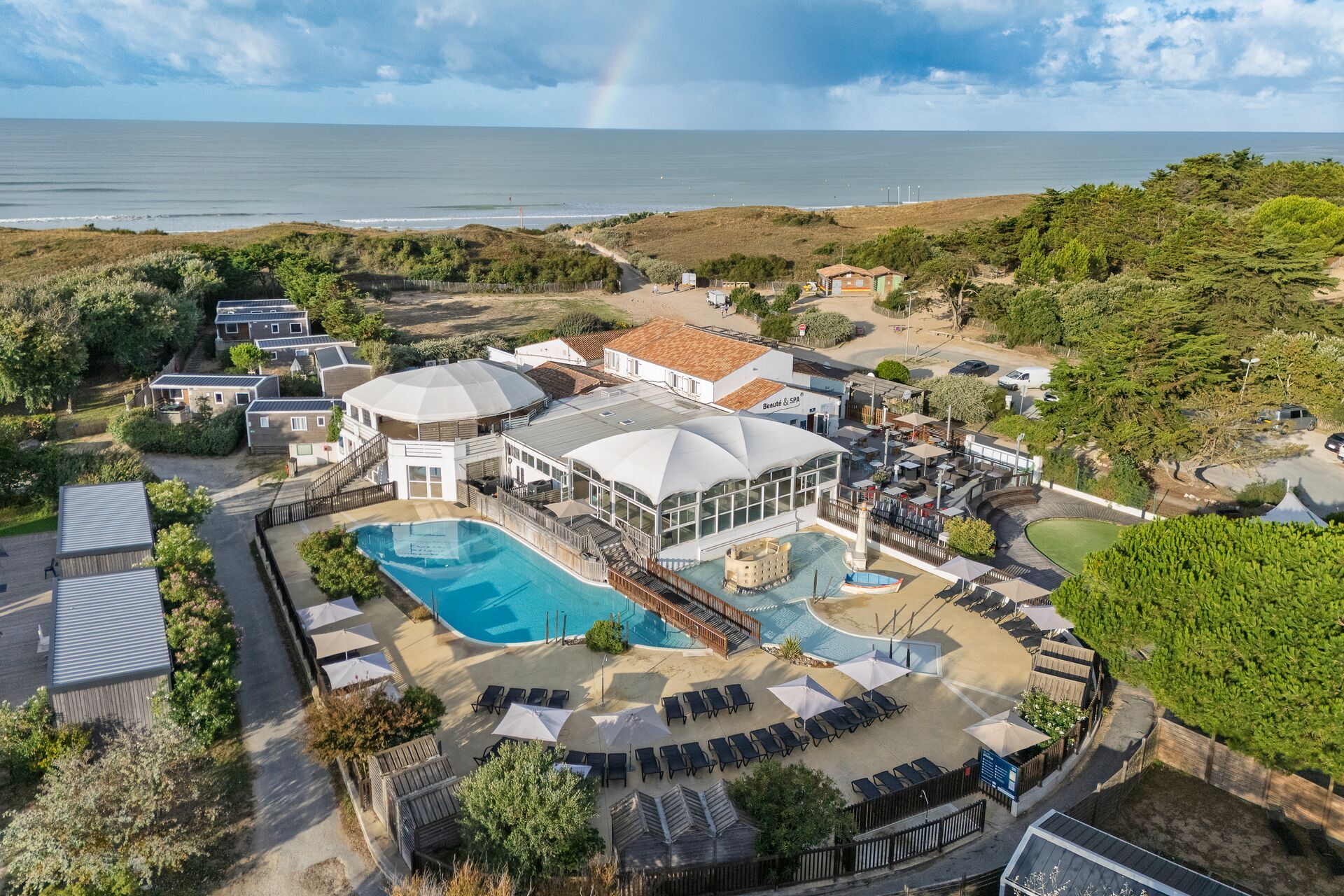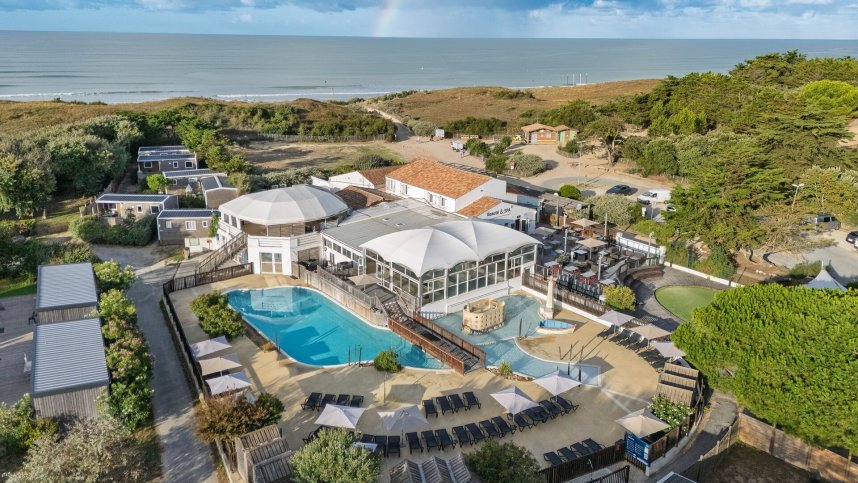 Two modern, clean and well equipped sanitary blocks provide the usual facilities and some shower units suitable for families with twin washbasins. Baby room, children’s toilets. En-suite accessible facilities. Laundry facilities. Motorhome services. Large restaurant/bar and shop. Swimming pools, one outdoor and one inside. Play area. Boules. Organised events and entertainment. Games/TV room. Tennis. Bicycle hire. Communal barbecues. Multisports area. Fitness room. Massage. Sauna, hamman and jacuzzi. Internet access and WiFi. Max. 1 dog.