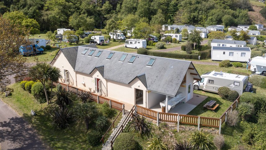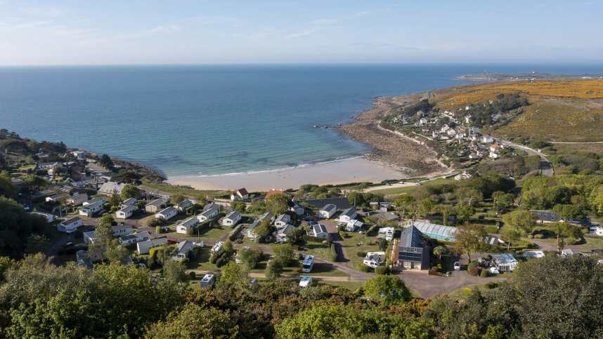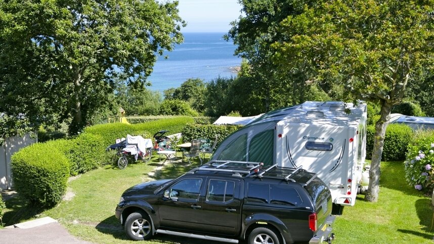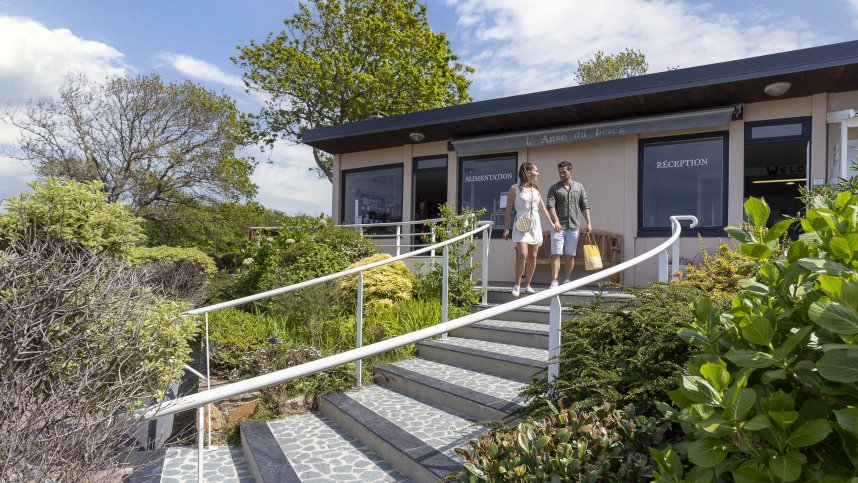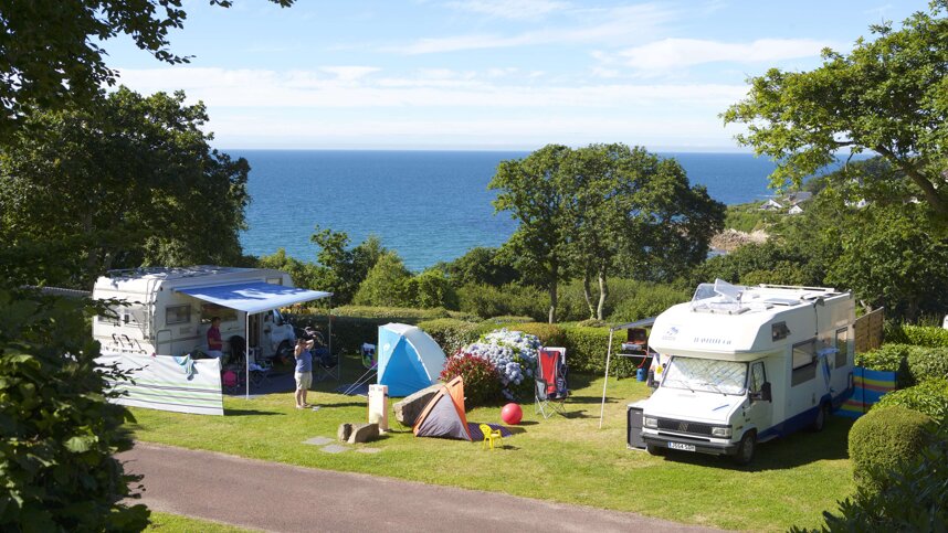 A friendly, family site, l’Anse du Brick overlooks a picturesque bay on the northern tip of the Cotentin Peninsula, eight kilometres east of Cherbourg port. This quality site makes a pleasant night halt or an ideal longer stay destination for those not wishing to travel too far. Its pleasing location offers direct access to a small sandy beach and a woodland walk. This is a mature, terraced site with magnificent views from certain pitches. Tarmac roads lead to the 230 touring pitches (all with 10A electricity) which are level, separated and mostly well shaded by many trees, bushes and shrubs. There are also mobile homes for rent.