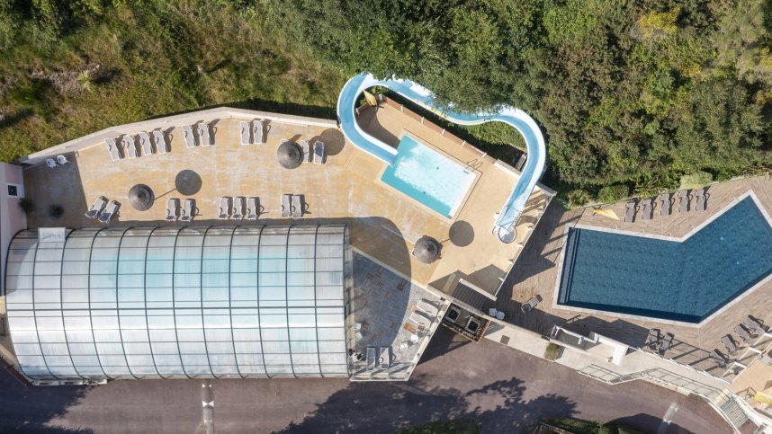New sanitary facilities are kept spotlessly clean and are well maintained. Washbasins mainly in cubicles and pushbutton showers. Provision for children, families and accessible facilities. Laundry area. Possibility of private sanitary on the pitch. Motorhome services. Shop (all season), restaurant and bar/pizzeria. Heated swimming pools (indoor all season, outdoor from 1/6). Tennis. Play area. Pump Track on site. Organised entertainment in season. Miniclub (5-12 yrs). Bicycle, SUP and kayak hire. Free WiFi throughout and faster connection for extra fee.