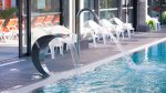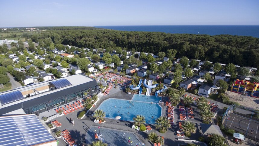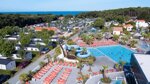 Large modern toilet block, fully equipped and with some washbasins in cabins. Baby bath. Some accessible facilities. Washing machines. Shop, bar, restaurants and takeaway. Outdoor and covered heated swimming pools with slides (from 15/5). Solarium. Entertainment for all in high season. Only gas barbecues permitted. Play area. Fitness room. Bicycle hire. WiFi throughout (charged). Path to beach. Max. 1 dog per pitch. Free shuttle to beach and city centre (July-Aug).