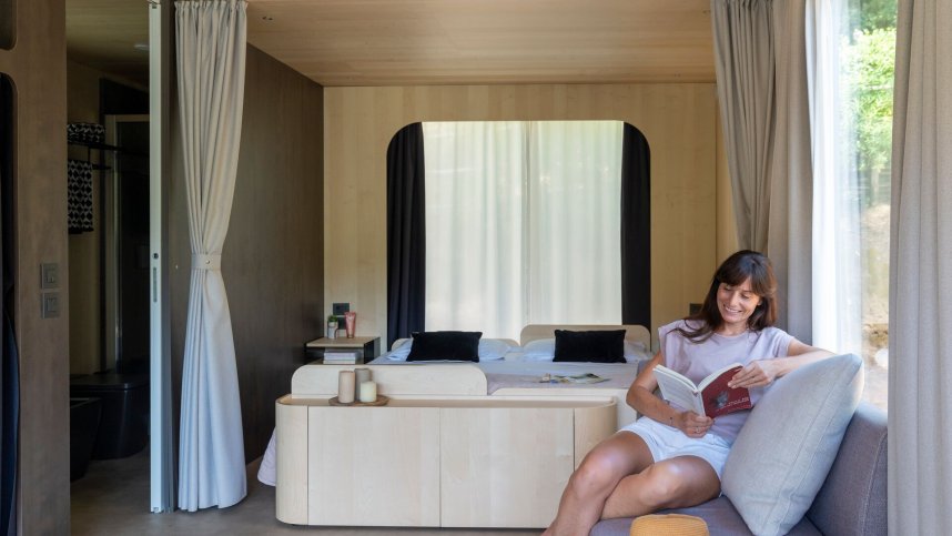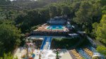 In a quiet situation in the Tuscan hills, six kilometres from the sea at Donoratico, this high quality site has a busy and attractive medium sized pool, overlooked by a pleasant restaurant/bar. The terrace has commanding views over the area and the sea and sunsets are spectacular. The site is set on steeply rising ground and has 213 pitches, of which 101 shaded pitches are for touring units, all with 3/10A electricity. They are in tiered rows on fairly narrow terraces. Although busy in high season, it remains peaceful at night. There is a large nature reserve adjacent and a free bus to the 20 km. long sandy beach.