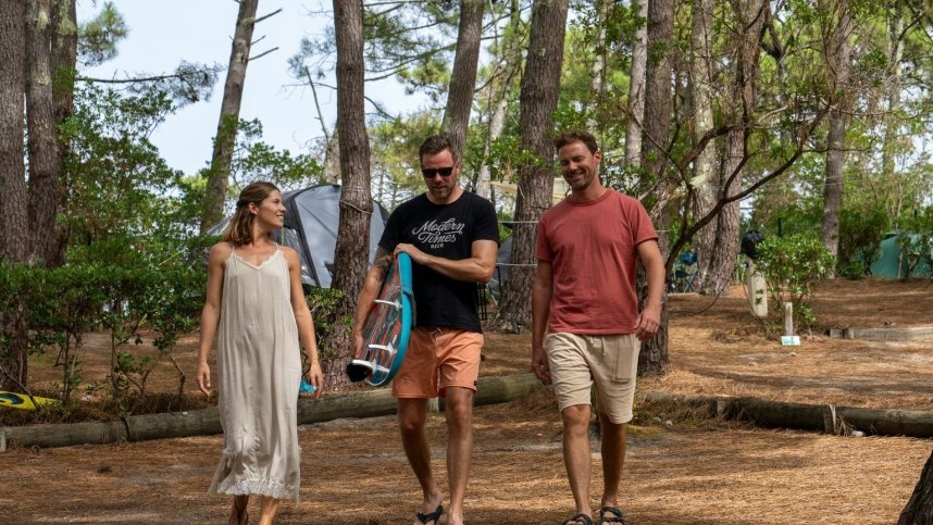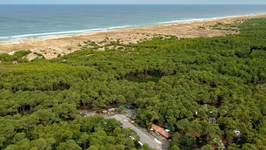 From Bordeaux take D106 towards Lège-Cap Ferret. Continue on D106 through town and in Les Jacquets, just before village sign for Le Petit Piquey, turn right. Follow through residential area and woods for 4 km. Site is on left.