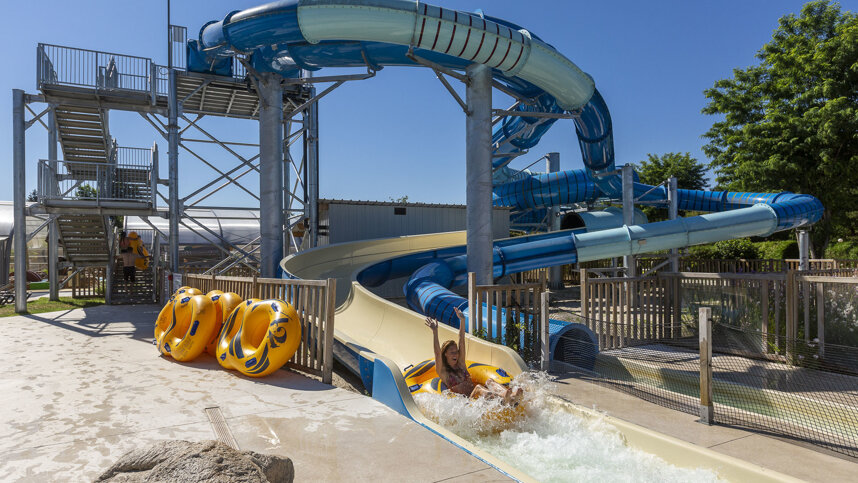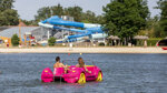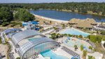 Three modern sanitary blocks include some washbasins in cabins and baby bathrooms. Laundry facilities. Facilities for families, accessible facilities. Motorhome services. Shop. Boutique. Restaurant. Takeaway dishes available. Bar with terrace. Pool complex. 7 water slides. Spa centre. Library. 6-hectare lake (fishing, bathing, canoes, pedaloes, cable-ski). 9-hole golf course. Adventure play area. Tennis. Minigolf. Boules. Roller skating/skateboarding (bring own equipment). Bicycle hire. WiFi (charged).