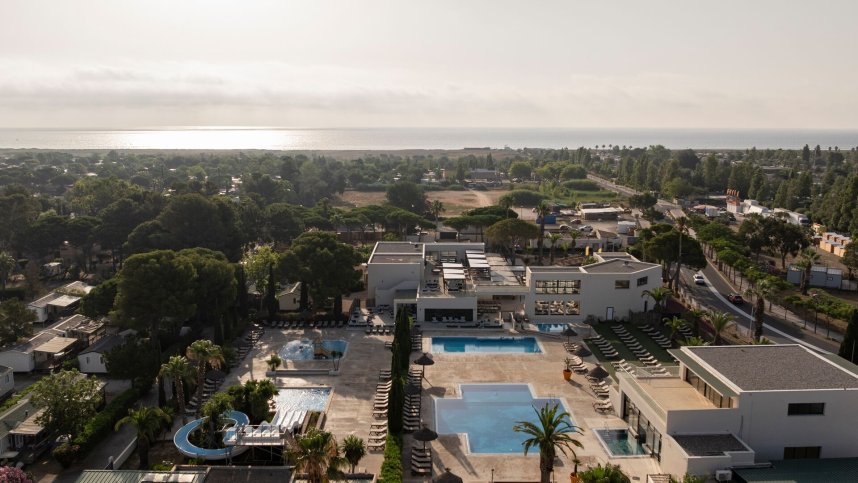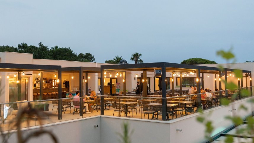 Modern, fully equipped sanitary facilities with accessible facilities. Launderette. Shop. Bar and restaurant. Takeaway and Pizzeria (1/7-31/8). Swimming pool and water slides. Paddling pool. Wellness centre. Outdoor fitness equipment. Tennis (floodlit). Multisports area (basketball, football, volleyball). Pétanque. Archery (1/7-31/8). TV/billiards room. Play area. Disco (every evening). Miniclub (6-12 yrs and teenagers’ club for 13-17 yrs July/Aug). Bicycle hire (all season). WiFi throughout.