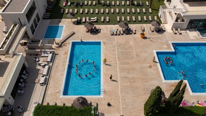 The pool complex at les Tropiques is very impressive with four pools, two heated with good provision for children, including a range of toboggans, all surrounded by spacious sunbathing terraces with loungers and parasols. Two play areas are provided – one for smaller children, the other with bridges and slides for the older ones. A wellness centre was scheduled to open just after we visited.