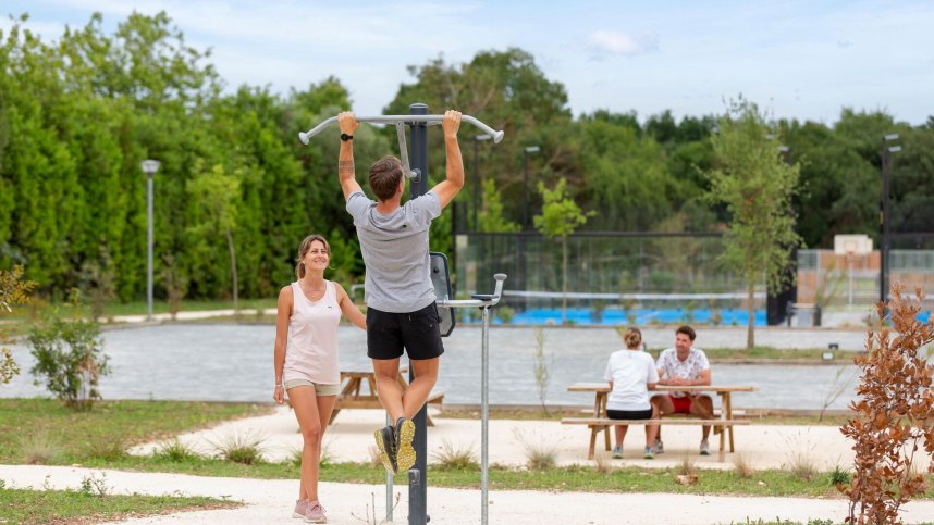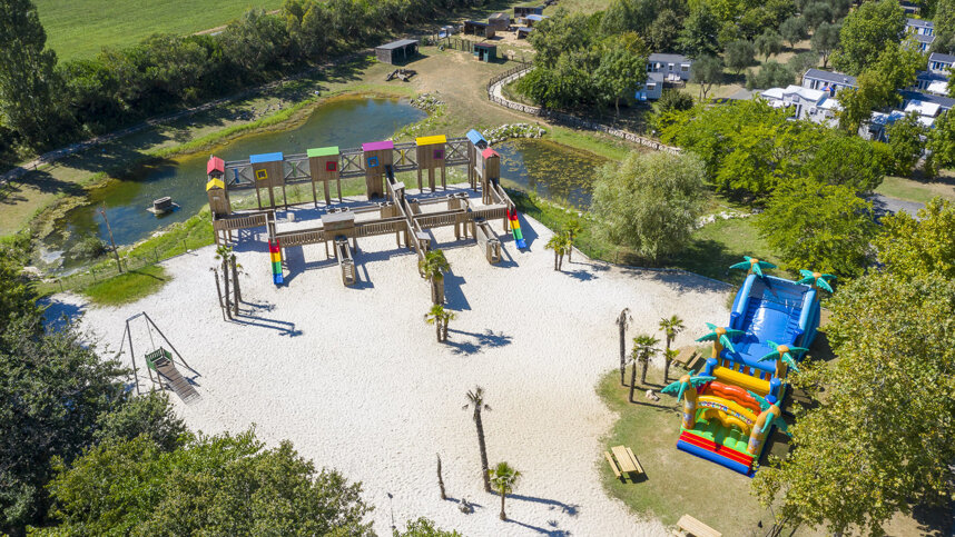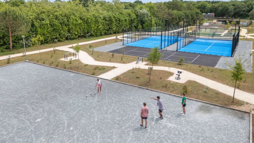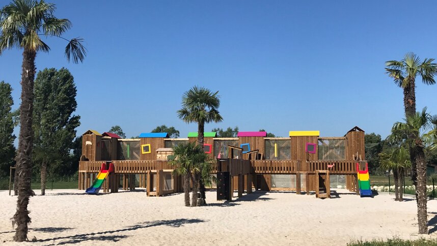 Three spotless toilet blocks include units with washbasins and showers. Accessible Facilities. Large laundry. Motorhome services. Supermarket with fresh bread. Restaurant/bar. Takeaway with wood oven pizzas. 2000 m² swimming pool complex with water slides, lazy river and large paddling pool. Wellness & Fitness Centre with indoor swimming pool, sauna, hammam and Jacuzzi. Massage rooms, spa treatments & fitness area with cardio & weight training equipment. Playgrounds. Multisports pitch. Tennis. Games & TV rooms. Bicycle & pedal-go-kart hire. Entertainment/excursions in high season. Free children’s club for children from 4-12 years. Animal farm. Equestrian centre (seasonal). New playgrounds with zipline. WiFi zones (charged).
