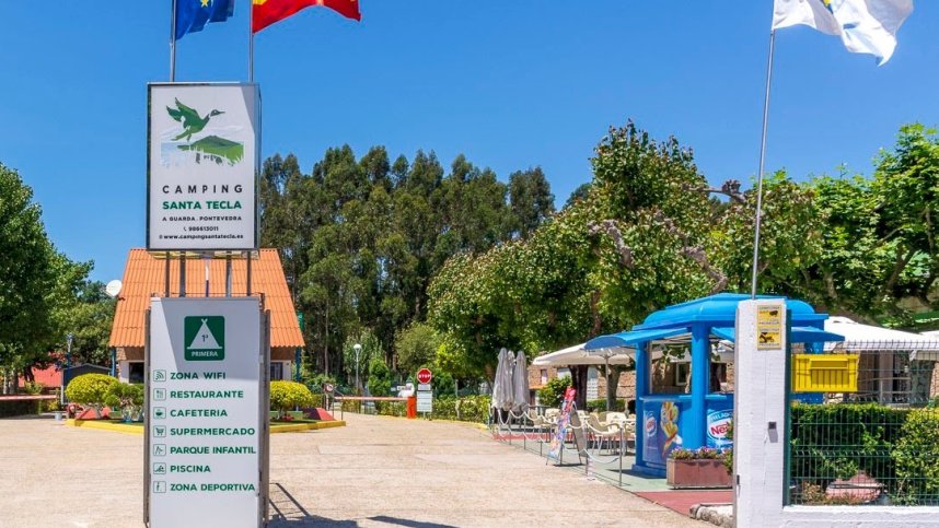 Camping Santa Tecla is an all-year site in the Galicia region within a protected nature reserve at the mouth of the Minho River, which forms the border between Spain and the northern part of Portugal. The site is at the foot of Santa Tecla Mountain, from which it derives its name. The site has grass pitches, of which 432 are for touring units and have a 6/16-amp hook-up point. There are also 53 accommodation options to rent. There is a choice of pitches, which are more or less the same size. Some have shade; some don't. The degree of privacy also differs.