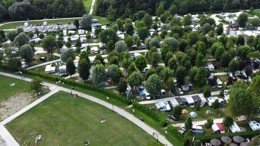 The facilities sit back from the lake fence and there is a pleasant patio to the restaurant which also sports a pizza oven. Buses from the village will take you around the area or there is a train (4 km) which will take you to Venice the easy way in just over an hour. Torches are useful especially on the lake shores. A short walk outside the fence on the lakeside will take you to local municipal facilities where children can play and hire pedaloes. The pretty village is close by. With reasonable prices, this is plain camping with a distinctive Italian flavour.