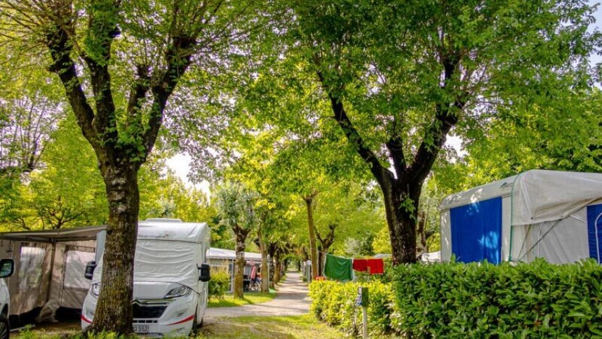 On the shore of Lago d’Iseo, one of the lesser known of the Italian Lakes, this campsite is part of a large tourist complex close to the town of Iseo. There are some 350 pitches, with 80 interspersed for touring units, plus a small number occupied by tour operators. Electric hook-ups (3A) are available throughout and there are 30 hardstandings for motorhomes. The shops, bars and restaurants of the attractive lakeside town of Iseo are within easy reach on foot or by bike, whilst a gentle drive along the shore takes you to numerous delightful towns and villages including Sarnico and Sulzano.u>