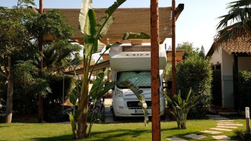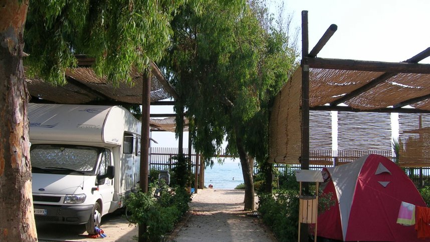 Camping Scarabeo is a beautiful site in Punta Braccetto, a little fishing port in Sicily’s southeast corner. It is a perfect location with exceptional facilities to match. Split into two separate sites (just 50 m. apart) with a total of 70 pitches, it is being constantly improved with care by Angela di Modica. All pitches are well shaded, some naturally and others with an artificial cane roof and have 3/6A electricity.