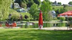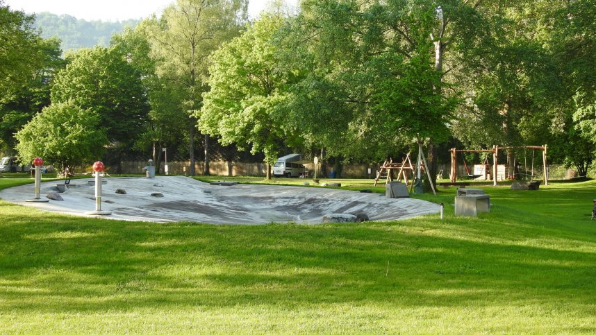 Schaffhausen is a family-friendly site in a very pleasant setting on the banks of the Rhine, with plenty of shade from a variety of tall trees. It is level and grassy, the first half being open lawns and the rest of the touring area wooded, with numbered pitches (mostly small – up to 70 sq.m) and 3-4A electricity. There are many day visitors in summer as the site, which incorporates a public park, is ideally placed for swimming, canoeing and diving in the Rhine. Whilst here, you would not want to miss the impressive waterfalls at Schaffhausen, 150 m. wide and 25 m. high.