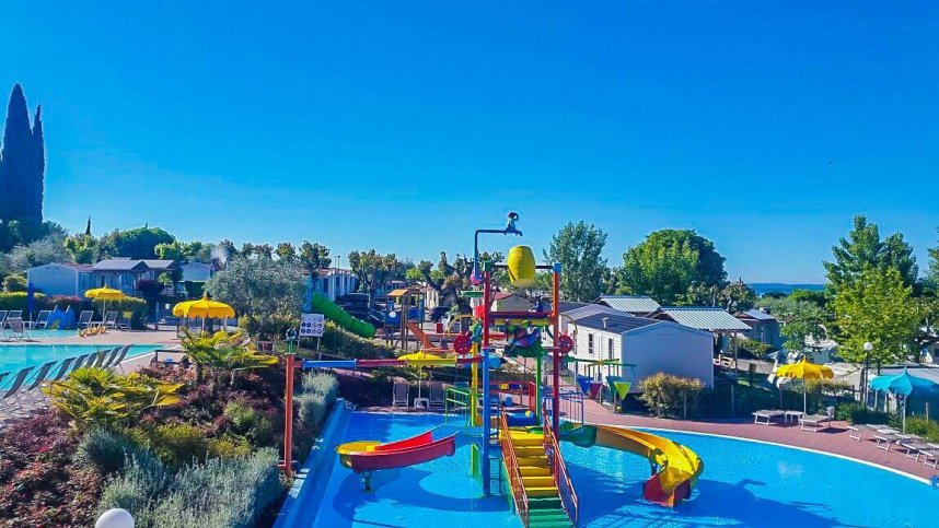 Situated alongside Lake Garda, Serenella has 297 average size pitches, some with good lake views. Movement around the site may prove difficult for large units (look for the wider roads). The pitches are shaded and have 6A electricity. A long promenade with brilliant views of the mountains and lake runs the length of the campsite. It is dotted with grassy relaxation areas and beach bars where snacks are served and the atmosphere is charming. The pleasant pool complex is near a traditional-style restaurant where delicious, sensibly priced food is served. There is some road noise at some of the amenities and the pool.
