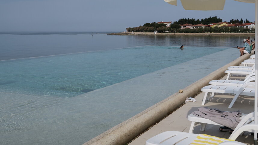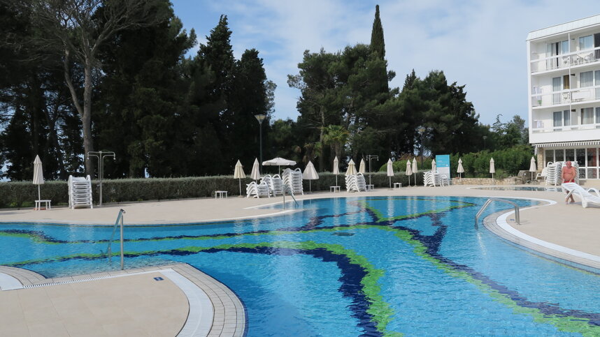On-site you will find a beach bar, pool bar and a bar/restaurant all overlooking the sea, you will find the food is of a very high standard, yet not expensive. Two outdoor pools, bakery & news kiosks, mini-golf, modern children’s play areas, cycle and E-bike hire, many coastal walks and direct access to a supervised beach, make this the perfect holiday site. (beaches in Croatia are all stoney, so beach shoes are advised ). Novigrad is a 15-minute walk and is a lovely traditional Croatian town, here you will find harbour restaurants, supermarkets, shops and an open market selling fresh produce.