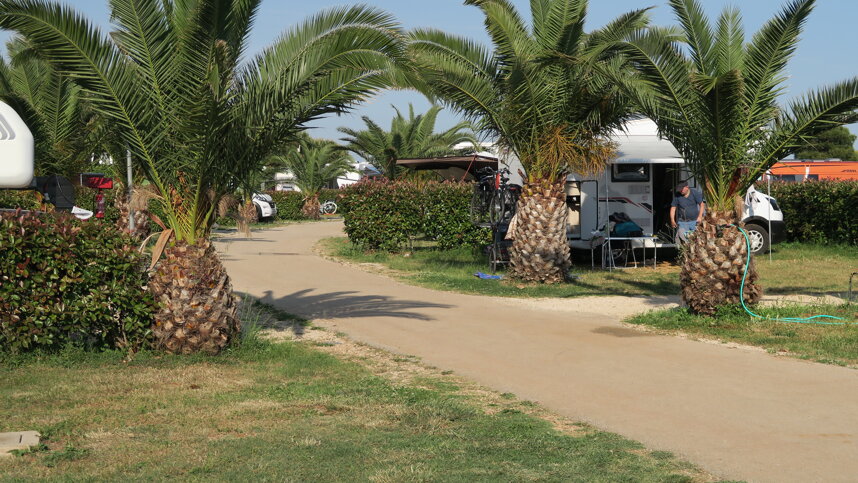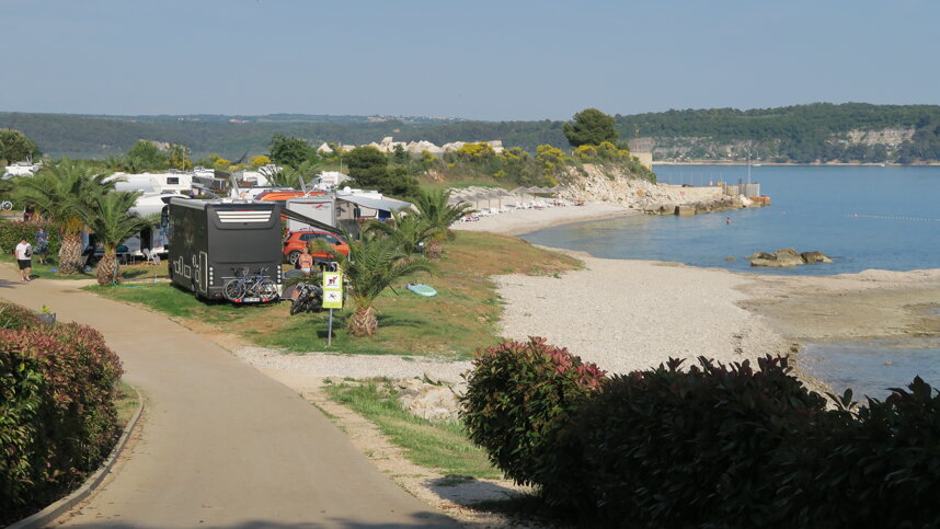 Leave A9 motorway at Novigrad exit and head for the town. The site can be found to the east of the town centre. The entrance road is opposite OMV petrol station and is well signed.