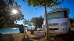 Camping Slatina is a well shaded terraced site, beside the fishing port of Martinscica, on a bay of the Adriatic Sea. It has 1600 pitches for touring units, most with 16A electricity, reached by steep, tarmac access roads, sloping down to the sea. Two small tractors are on hand to help visitors with caravans on and off their pitch. Pitches are large and level on a gravel base and enjoy plenty of shade and privacy from mature laurel trees. The site is tastefully landscaped with plenty of flowers and walkways leading down to the rocky beach and crystal clear waters of the Adriatic.