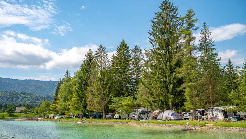 Some pitches have views over the lake, which has an enclosed area providing safe swimming for children. This site is a good base for an active holiday since both the Sava Dolinka and the Sava Bohinjka rivers are suitable for canoeing, kayaking, rafting and fishing, whilst the nearby mountains offer challenges for mountain climbing, paragliding and canyoning.