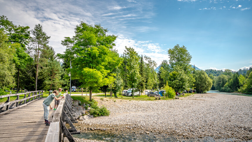 Five sanitary units with toilets (mainly British style), including child size toilets, controllable hot showers, washbasins, baby changing room, dishwashing area and freezers. Accessible sanitary Facilities. Laundry facilities. Motorhome services. Supermarket, bar/restaurant with stage for live performances. Playgrounds. Rafting, canyoning and kayaking organised. Miniclub. Tours to Bled and the Triglav National Park organised. WiFi throughout (free).