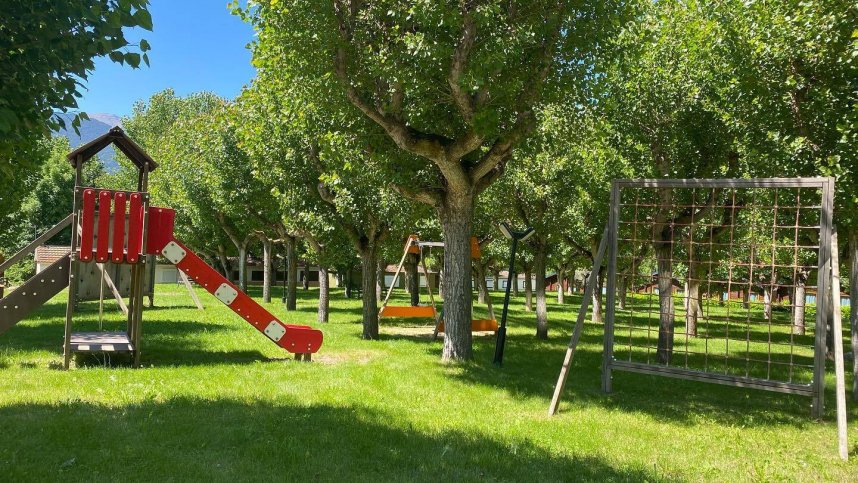 Modern sanitary facilities are in a central building on the lower level, with extra prefabricated units (unisex toilets/showers). Accessible Facilities for campers are on the upper level (wheelchair users will experience problems). Laundry facilities. Motorhome services. Small shop/bar/restaurant (1/7-15/9). Swimming and paddling pools (1/7-5/9). Indoor pool. Two play areas. Games room. Outdoor activity centre. Riding. Bicycle hire. River fishing. Dance area. Barbecue areas. Internet. Torches are required.