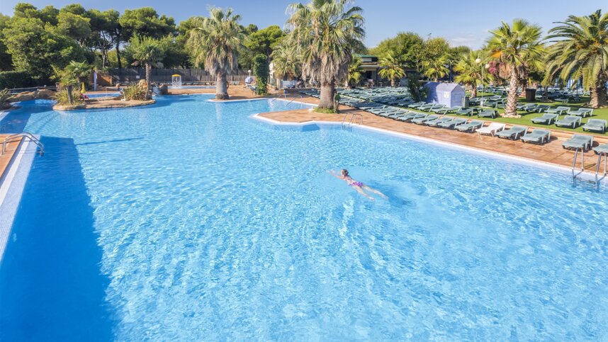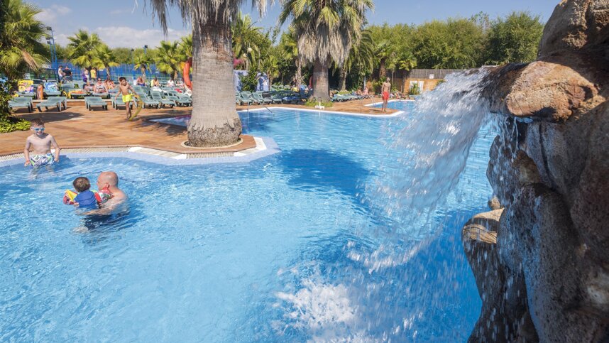 The Ribas family has run Camping Solmar for over 40 years, and a warm welcome awaits you. The well-equipped site is located 150 metres from a sandy beach in the busy resort of Blanes and is sprinkled with palm trees. The accessible, shaded pitches are 65-85 sq.m., and all have 6A electricity connections. On-site amenities include an attractive restaurant, bar, terrace, and a central swimming pool complex with islands and bridges.