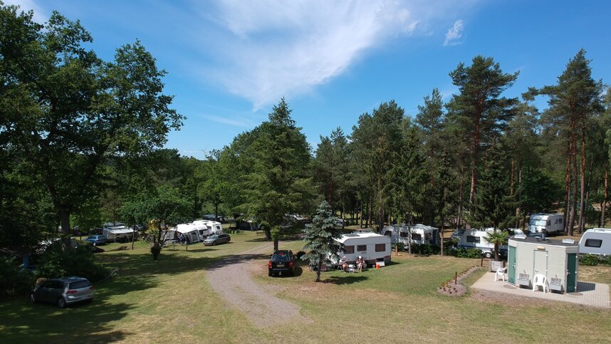 This is a small, friendly, family campsite tucked away amongst woodland on the edge of the village of Müden/Örtze, also known as the pearl of the southern heath. The village has a range of shops, restaurants and a bakery (fresh bread and rolls can be delivered daily by arrangement at reception). There are trees all around the campsite, but the main area is open and sunny, with views across the neighbouring fields and heath. The name 'Sonnenberg' translates as 'mountain in the sun', and pleasant views can be had from this slightly elevated position. Further afield, Hanover makes a wonderful day trip with plenty of shopping, museums and historical interest.
