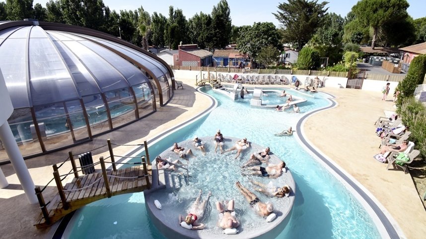700 metres from the beach. Shops. Hairdresser. Barber. Massages. Restaurant, bar and take away on site. Aquapark with 5 slides. Indoor heated swimming pool. Wellness/Spa area with heated pools, jacuzzi, sauna and hammam.Tennis. Multisports field. Archery. Pétanque. Children's playground. Children's club. Evening shows (seasonal).