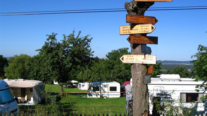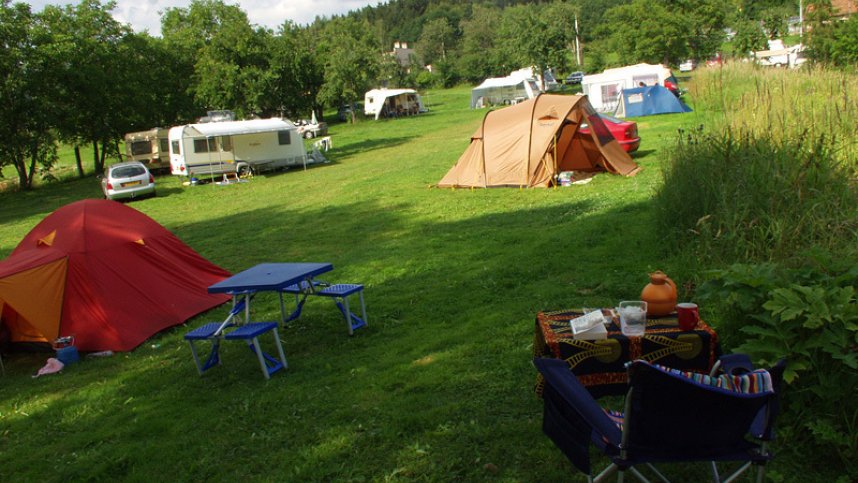 This cosy, family-size campsite has only 30 pitches, all with 10A electricity, in a slightly sloping, unmarked apple and plum orchard (look out for falling fruit in the Autumn). Drainage is good. The owner makes a real effort to show off his beautiful country to interested visitors and probably has more brochures than the average tourist office. Attached to the site is a pension (bed and breakfast) and a small restaurant with a terrace, which offers a limited menu but receives positive reports from visitors.