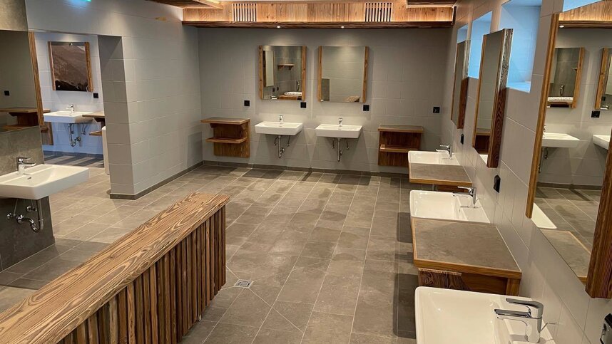 The modern, heated toilet block has showers, washbasins and wc’s. Laundry with washing machine and dryer. Family room. Chemical toilet point. Dish washing area. Motorhome service point. Defibrillator. Sauna. Solarium. Games room. Wi-Fi access. Pets allowed. Twin axel caravans accepted. BBQ’s allowed. In winter ice skates and curling rental at the cross-country ski run. In summer rental of trekking bikes. Restaurant with sun terrace. Children's play area. Table tennis. Tennis court. Shop. Bread available. Lake with sunbathing area. Information room. Boules pitch. Public transport nearby. Golf and riding nearby.