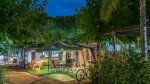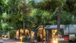 Camping Stel is situated between mountains and the sea with direct access to an excellent beach via a passage under the railway, which runs along the entire coast (so expect some rail noise, especially on the lower pitches). The 658 touring pitches are generally in rows separated by hedges, all have electricity (5A), 535 are fully serviced and many have individual sinks. In one area, radios and TVs are not allowed. The impressive central area contains a large bar/restaurant with terrace and snack bar overlooking the attractive pool complex, which includes a wonderful fun pool for children, a flume and a pleasant grass area carefully set out with palms.