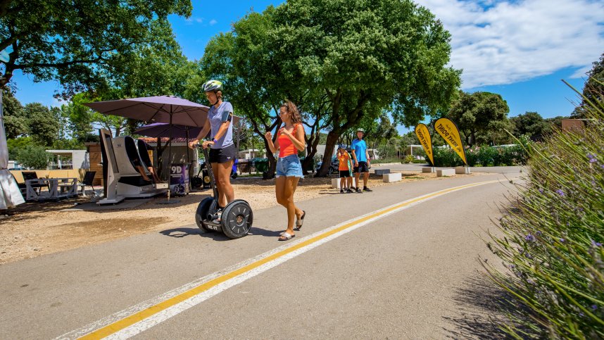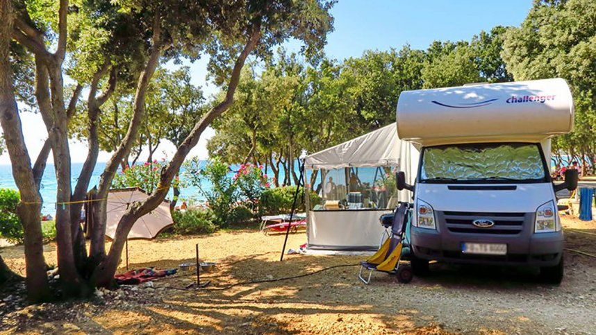 Strasko is a very large and well managed site that can claim to be one of the best in Croatia. Positioned close to Novalja on the Dalmatian island of Pag, it has 1,900 pitches on level ground with good shade from mature oak, pine and olive trees. The 900 touring pitches all have water, drainage, 10A electricity and TV connection. A further 250 pitches for FKK Naturist Camping are located in a private area behind a high rock wall with its own designated beach. The site can accommodate up to 6,000 people and can get very busy in July and August, but all pitches are clearly defined and there always seems to be space around you.